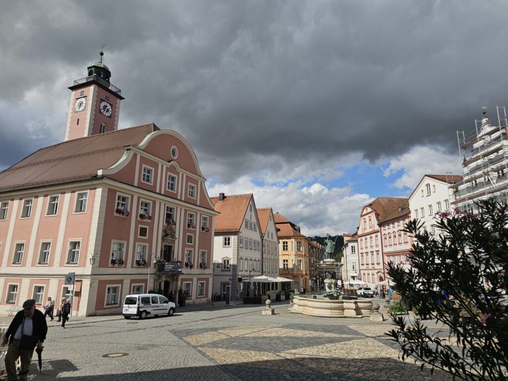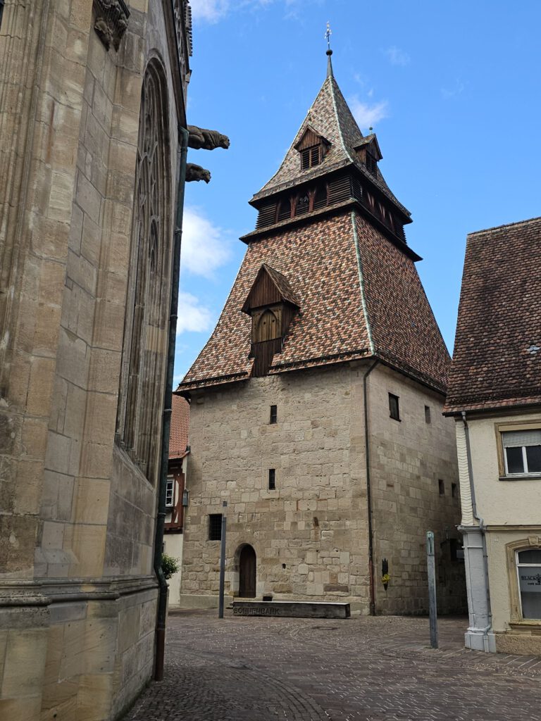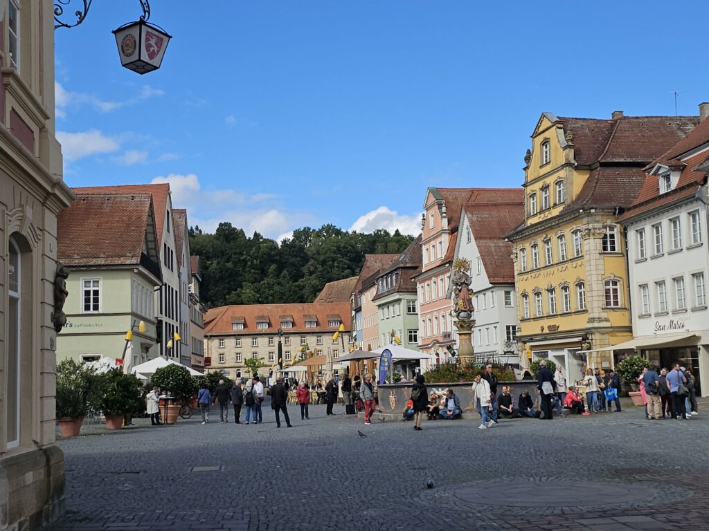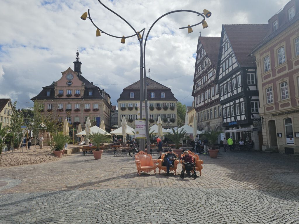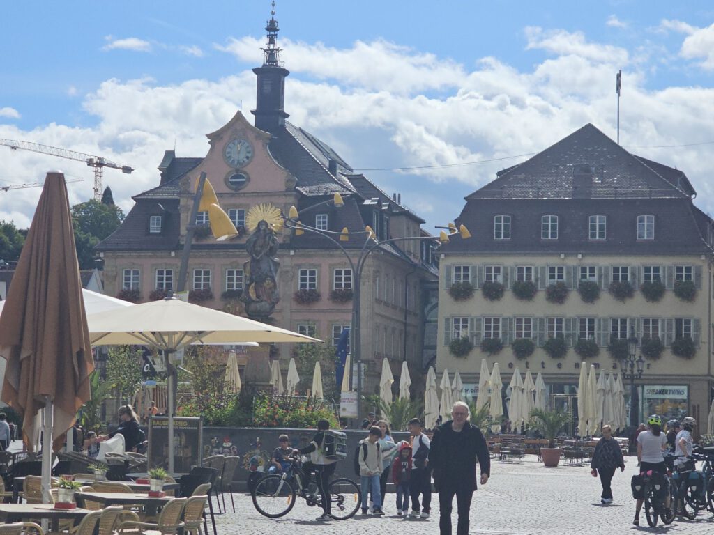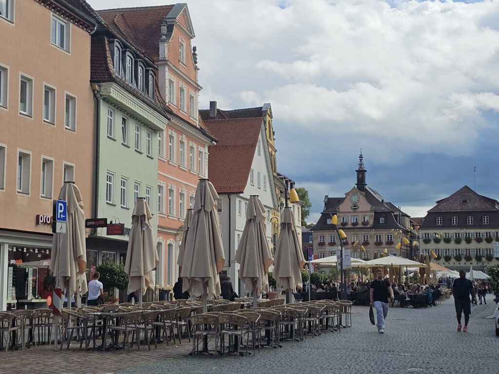 Den Stellplatz in Schwäbisch Gmünd erkennen wir wieder. Hier waren wir schon mal im November 2022 auf dem Rückweg vom Backnang wo wir Luigi gekauft hatten. Der Platz ist leider kein Highlight und sehr weit draußen. Damals hatten wir das Mokkaerle nicht mit und sind gelaufen und es war nicht wirklich schön. Jetzt mit Mokkerle finden wir erst heraus wie schön die Altstadt ist. Landen ausgerechnet in einem bayerischen Restaurant zum Essen. Danach fängt’s dann gleich wieder an zu regnen und wir fahren zurück verbringen den Rest des Tages im warmen Auto.